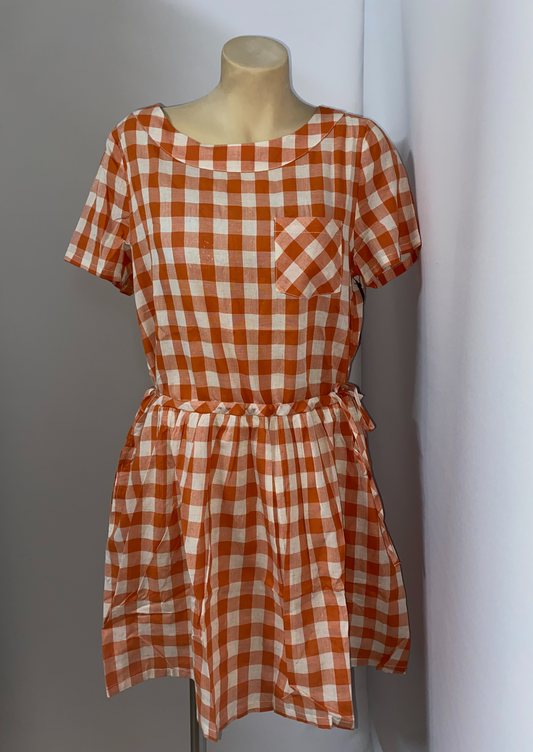 Doe and Rae Ladies Orange Check Dress - On Sale
