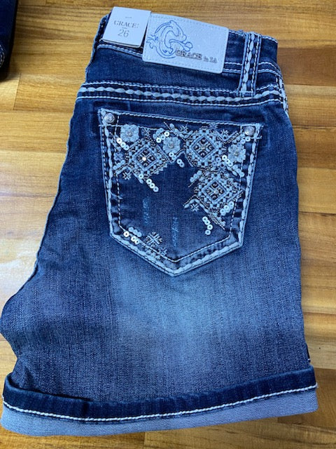 Grace in LA Ladies Mid Rise Denim Shorts - EH61765