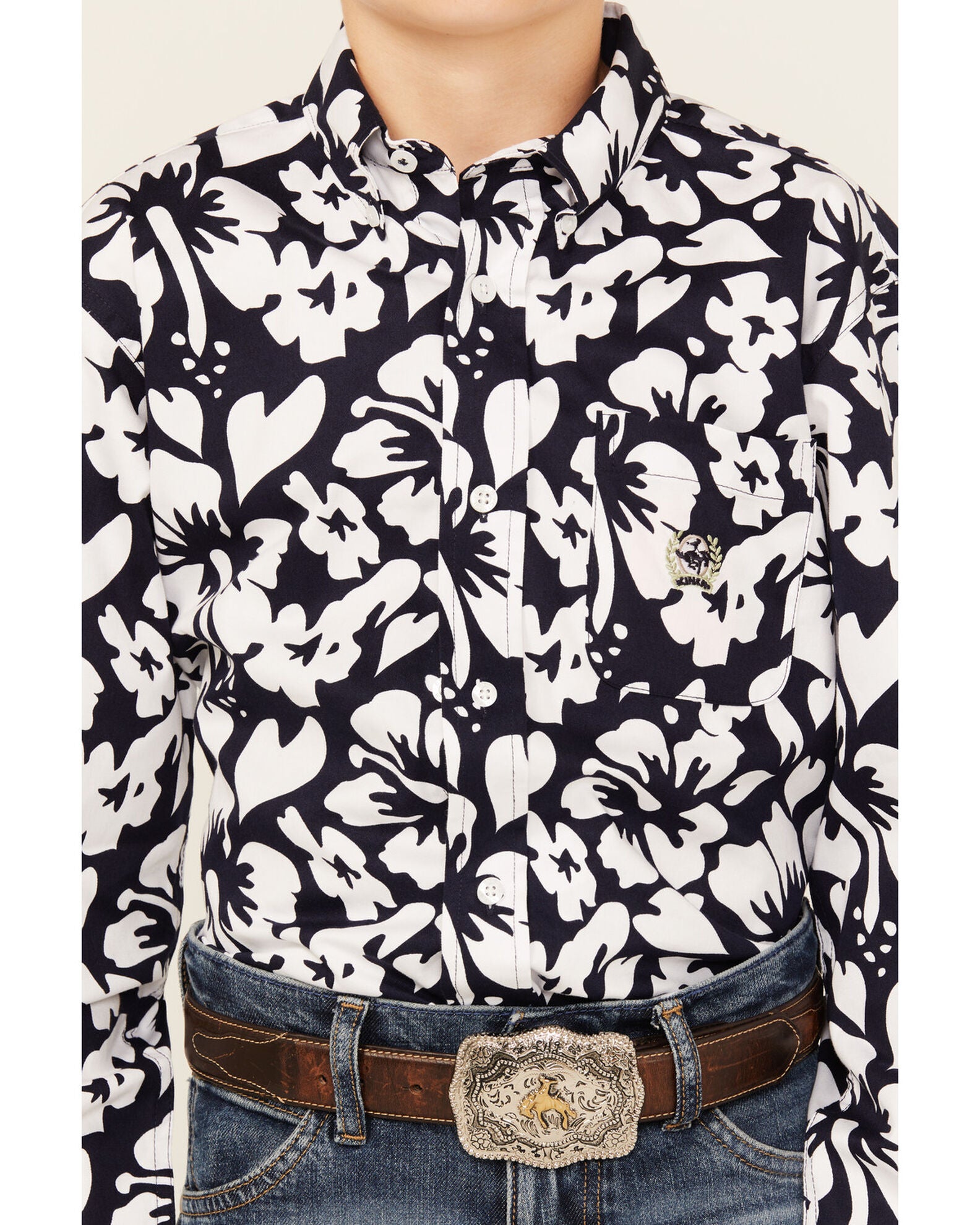 Cinch Baby and Infant Floral Print Button Down Western Shirt - Navy - MTW7062366