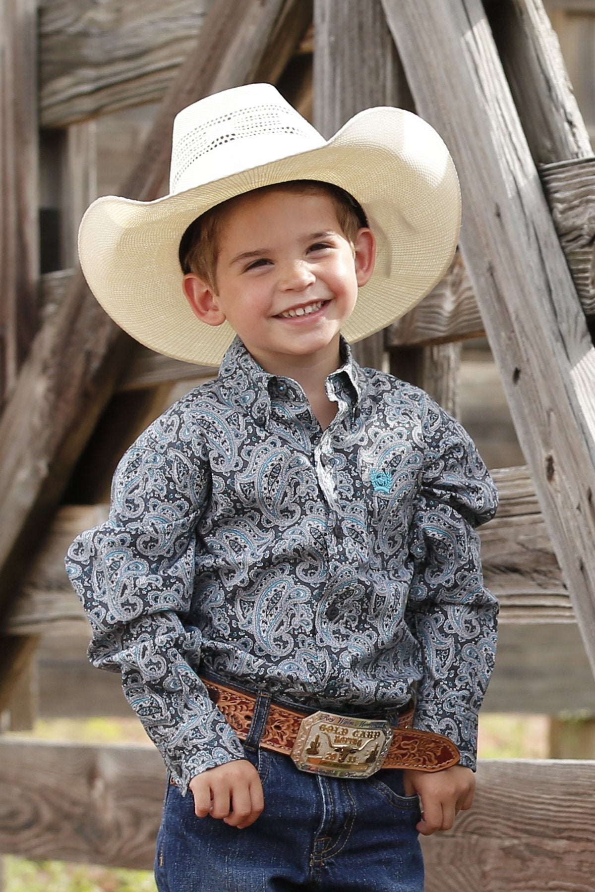 Cinch Toddler Boys Grey and Turquoise Medallion Paisley Print Button-Down Western Shirt