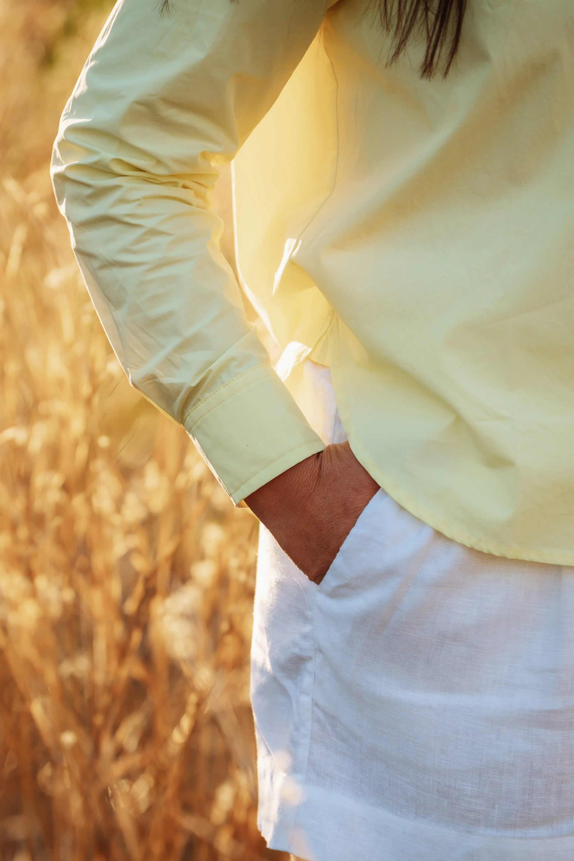 In a soft pastel yellow, Billie brings a little sunshine to your everyday wardrobe. Whether worn crisp and buttoned-up or loose and breezy over denim, she’s made for living in.