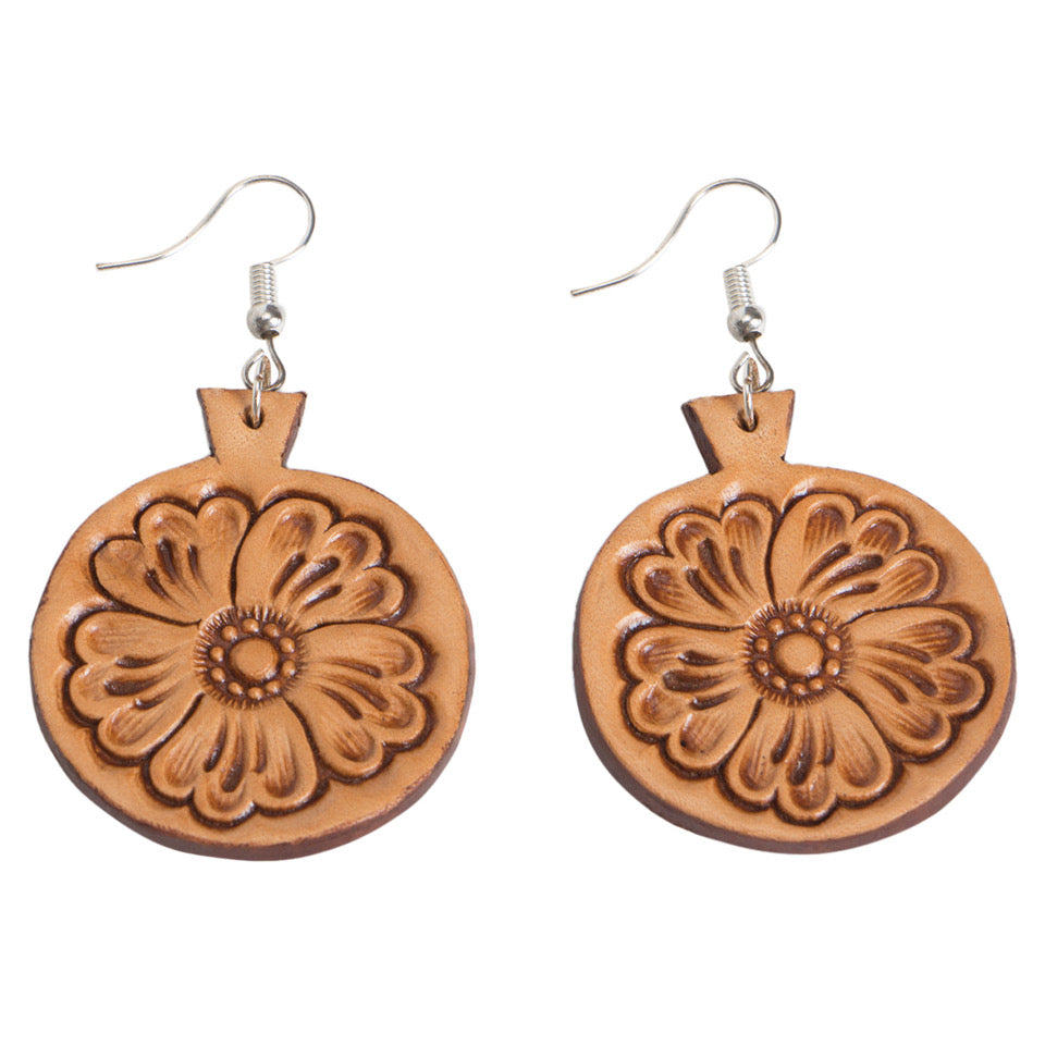 This impressive Tooled Round Shape Surgical Steel earrings are both echt and chic at the same time. With intricate hand tooled details these leather earrings look stunning paired with festival wear, daily denims or even funky evening wear.