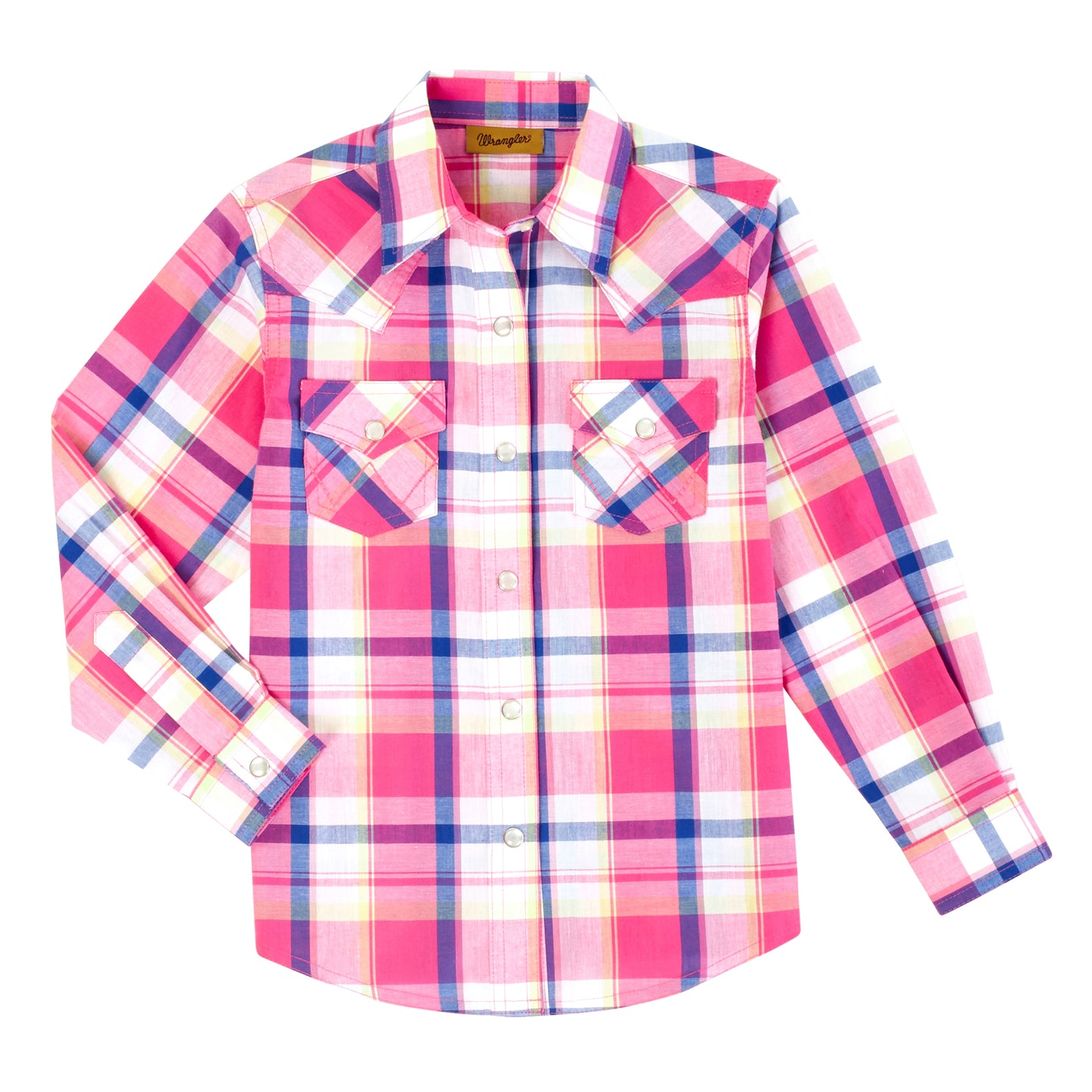 Wrangler Girls Western 2-Pocket Check Long Sleeve Shirt - Rose/Violet