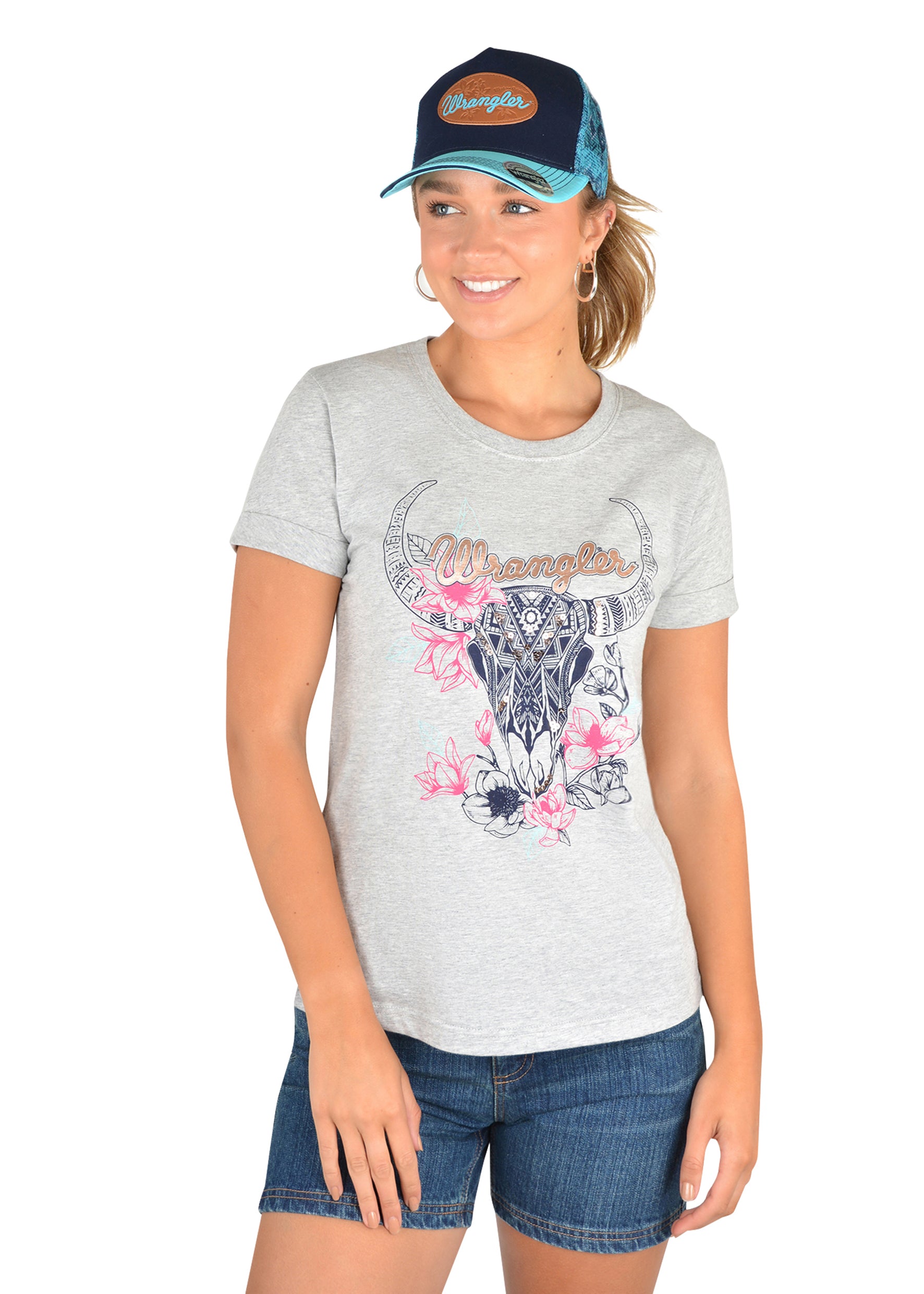 Features: Classic tee shape, original hand drawn Wrangler® printed design with foil print and sequin detail, rolled hem sleeve detail